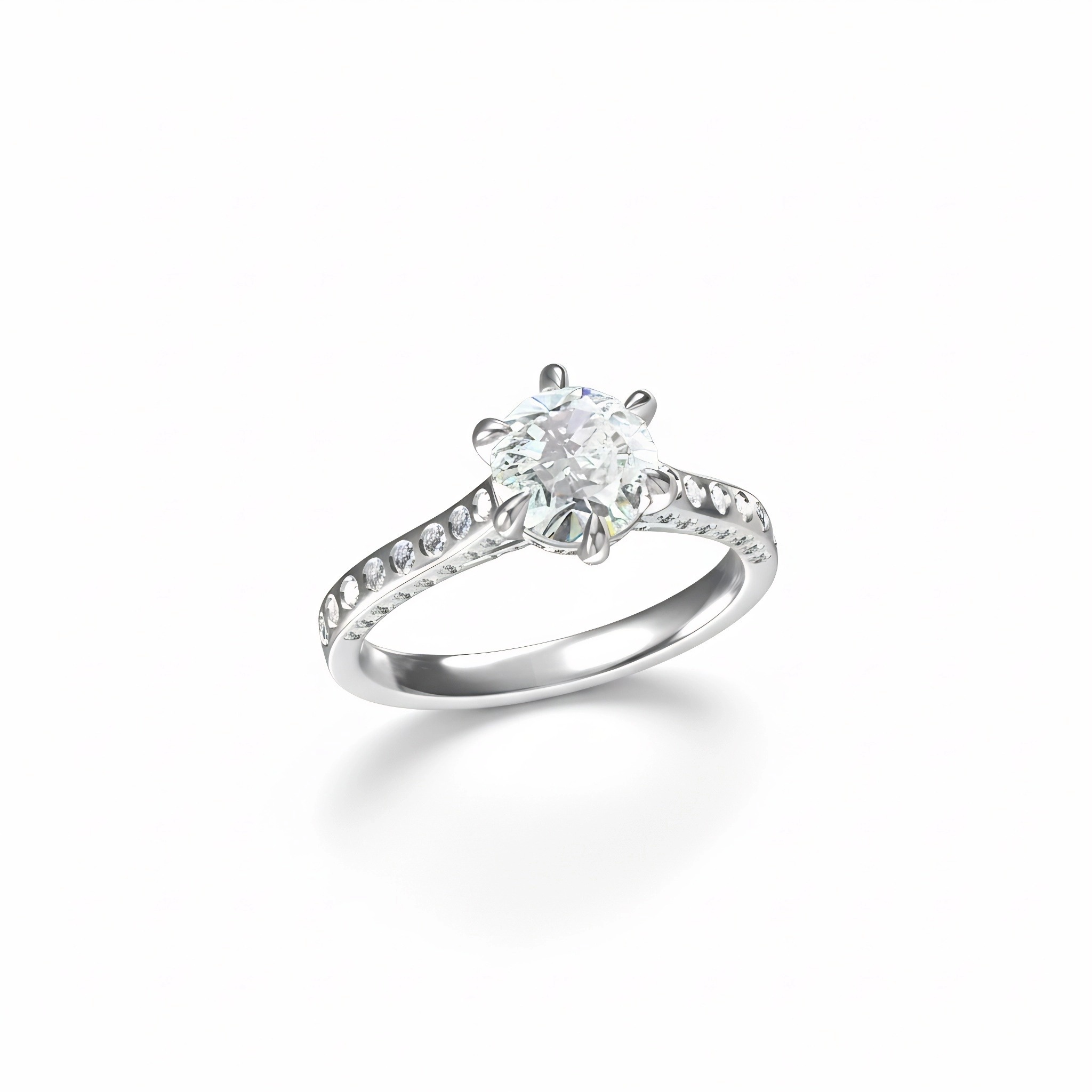 Gold Ring Setting for 2 ct Diamond in 14/18K White Gold